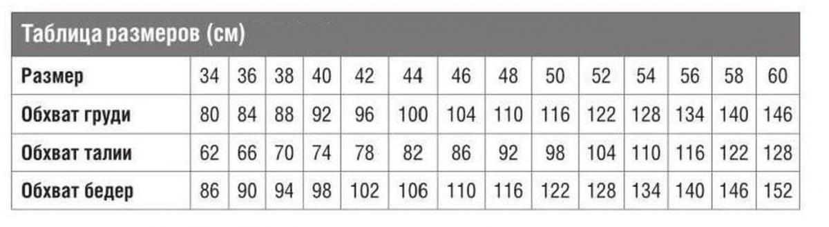 Размеры: 36/38 (40/42) 44/46